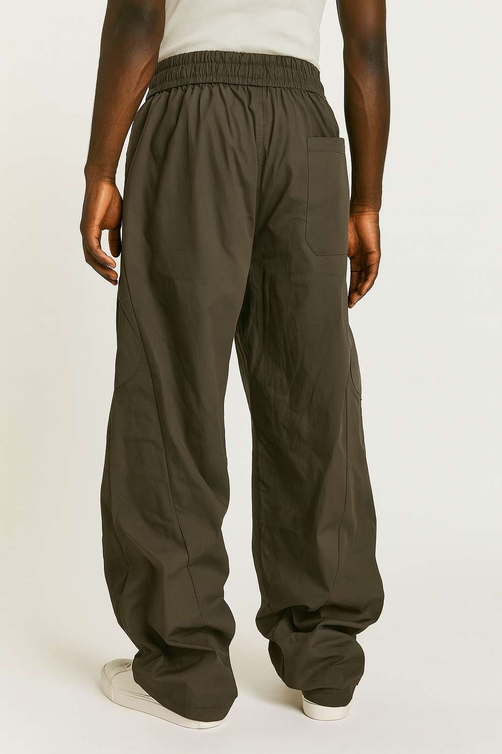 Obsidian Vault Cargo These cargos reimagine utilitarian function through a luxury lens featuring a heavy drape, subtle sheen, and clean finish that elevate their street-bound purpose. Designed with an exaggerated wide leg silhouette and signature 7-pocket configuration, they offer unapologetic volume with refined control. The side flap pockets with matte gunmetal snap closures lend a rugged edge softened by a fluid fall